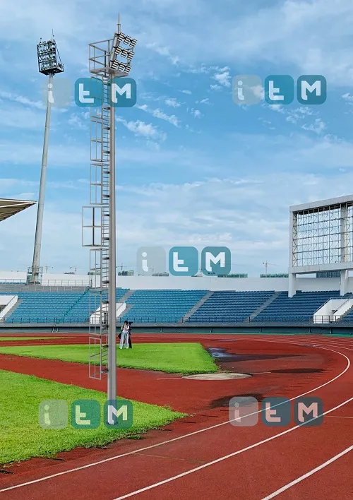 Мачта со стационарной короной обязательно должна быть укомплектована лестницами и площадками для отдыха во время подъема, поскольку высота конструкции составляет от 16 метров и чтобы заменить осветительные приборы, специалисту нужно подняться на вершину конструкции.
